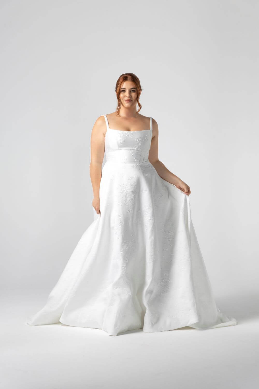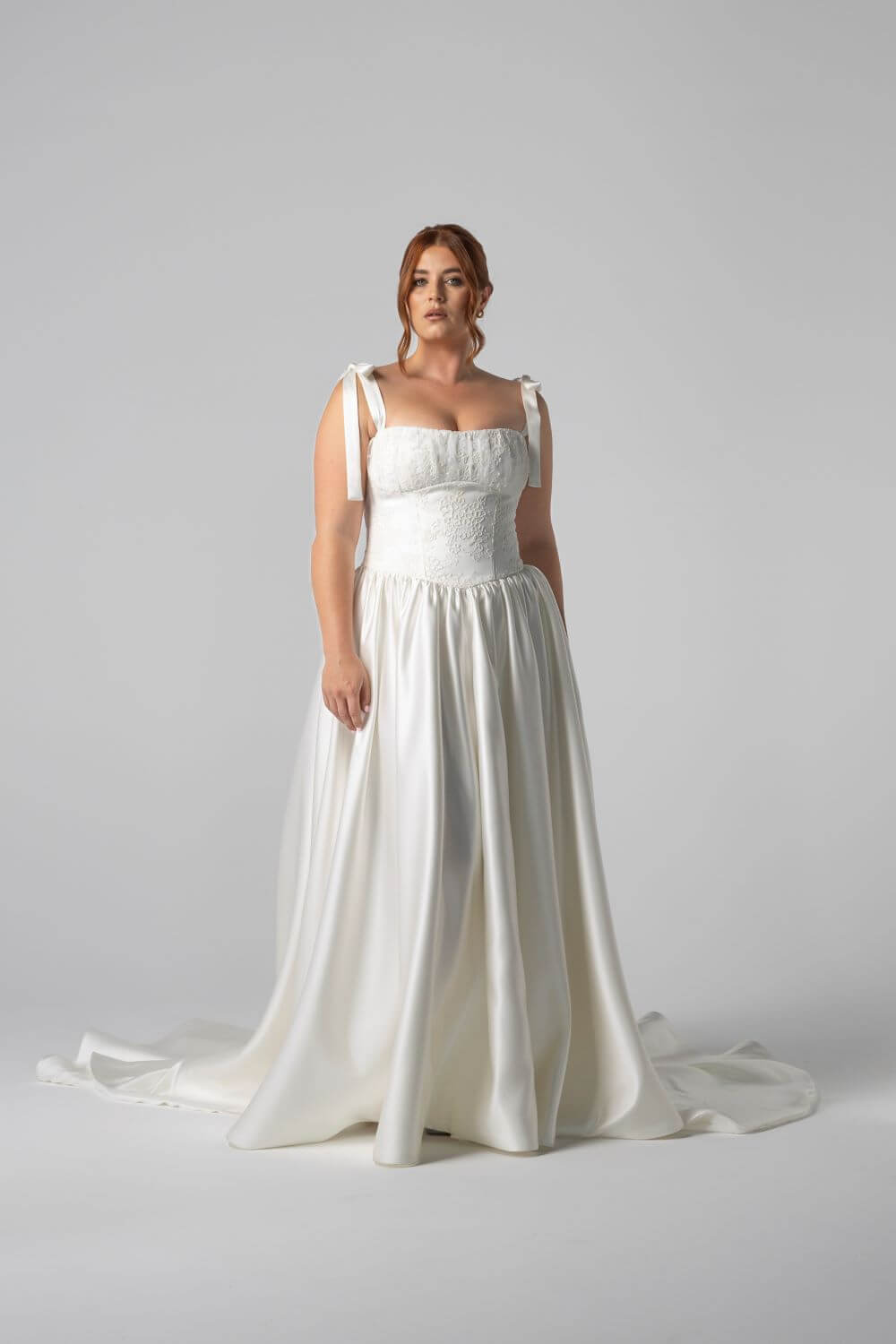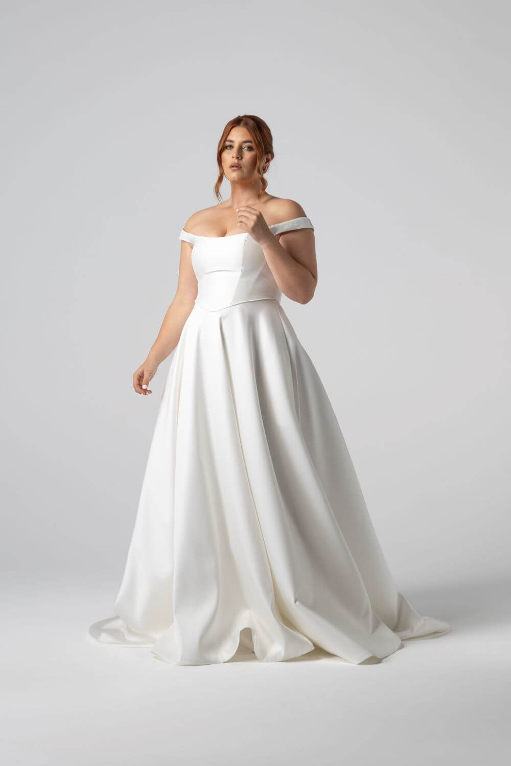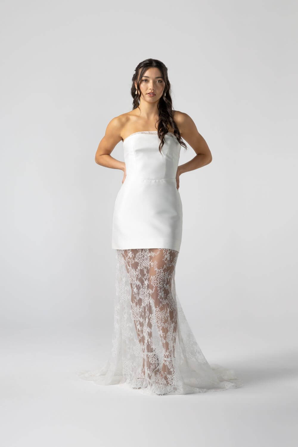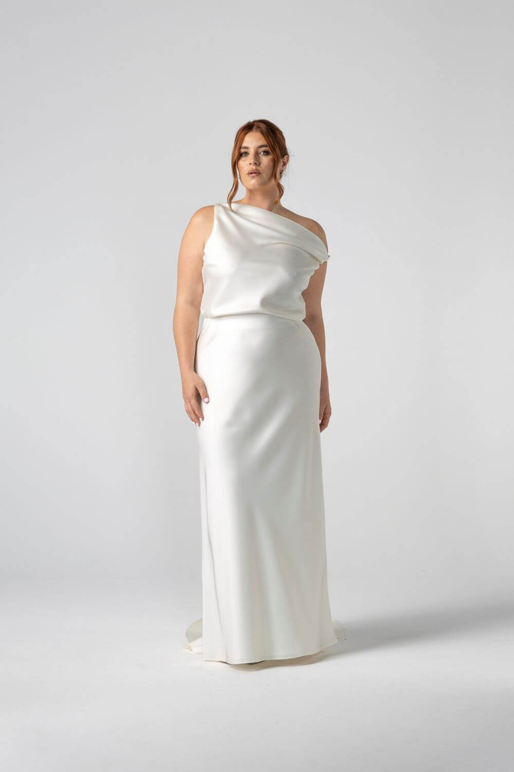 A modern bridal collection of wedding dresses, separates, and accessories designed for ease, movement, and understated elegance. Old Hollywood glamour meets modern minimalism in refined silhouettes, vintage charm, and soft drama, made for the modern wedding aisle.