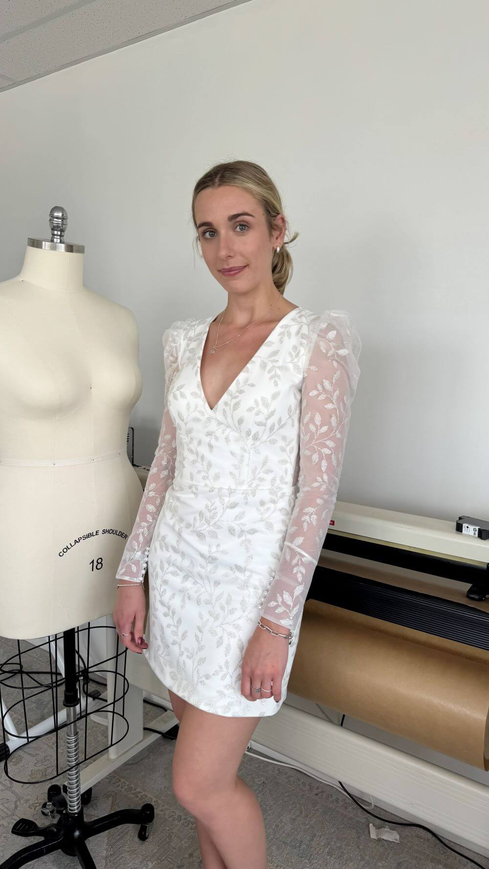Our bridal minis are made for moments that feel a little less traditional and a lot more fun. Whether you’re eloping, changing for the reception, or just love a short silhouette, these modern mini dresses are effortless and bold. Designed with the same quality and fabric as our full gowns, they bring personality and play to your wedding wardrobe.
